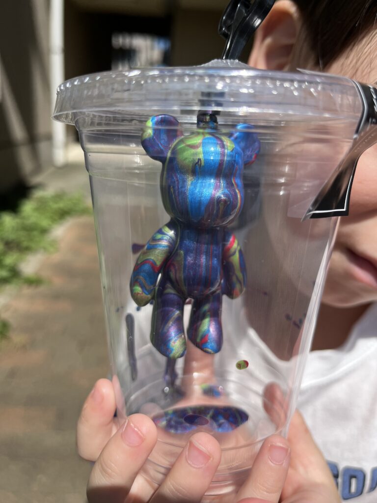 紙コップの中にお色を自分で配合し、流しながら色付けしていくことで流れるようなデザインになり、同じものが2度と出来ないアートになるそうです🌱